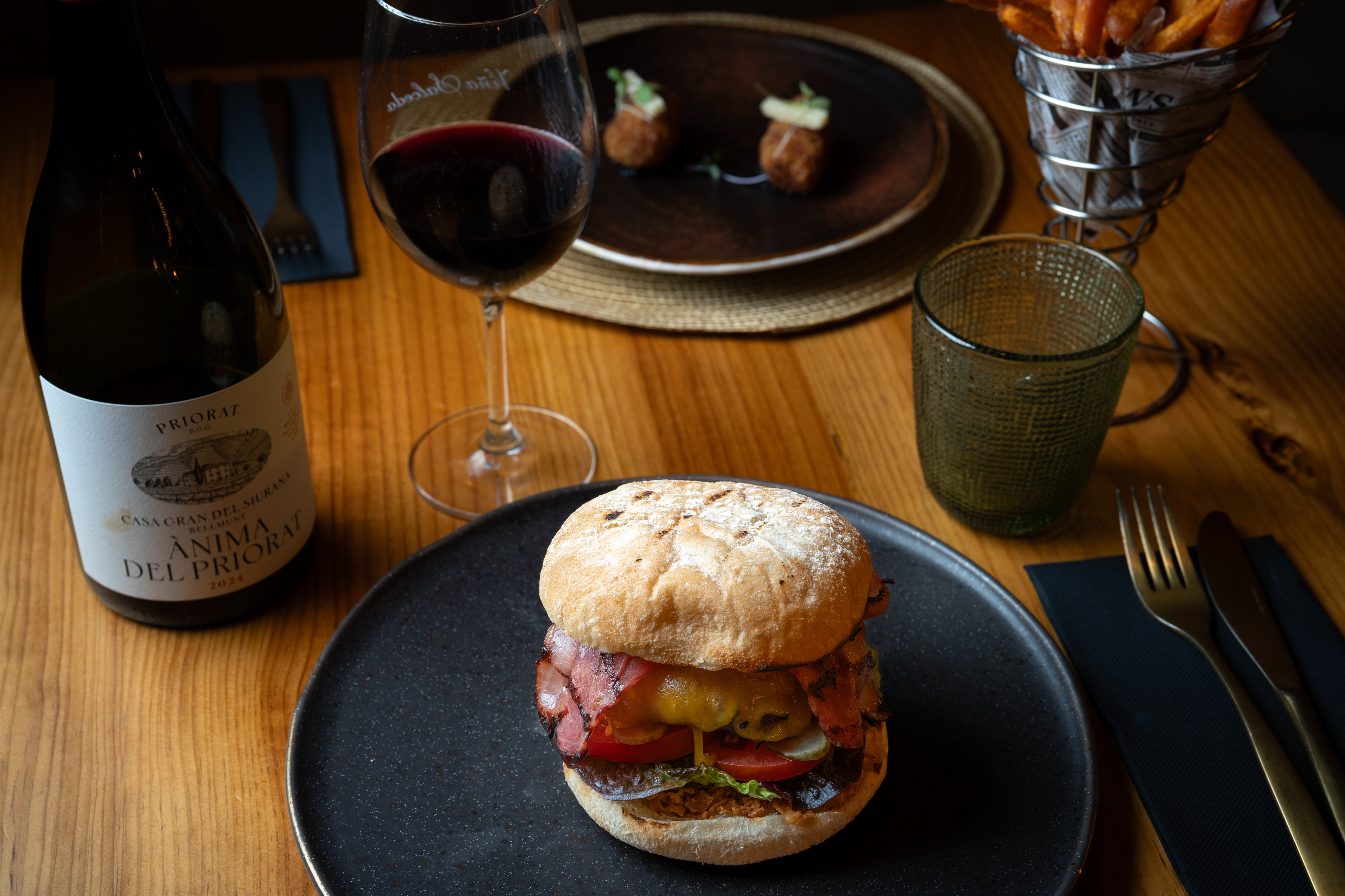 Un espacio íntimo en Sant Feliu de Llobregat donde la cercanía se traduce en sabor. Esta serie fotográfica captura la calidez de El Clandestí, centrando el foco en sus icónicas burgers —con opciones veganas que no sacrifican textura ni potencia visual— y su variada propuesta de platillos para compartir. Desde el crujiente de sus croquetas hasta el colorido de sus nachos y bravas, cada toma busca resaltar el detalle artesanal y la frescura de una carta diseñada para disfrutar en buena compañía.